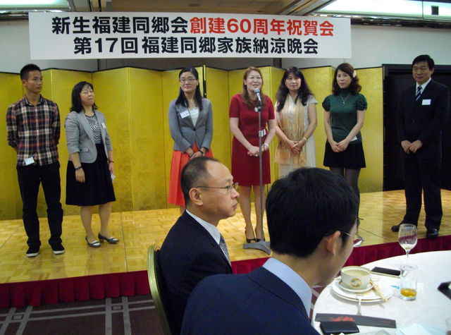 今年で十七回目を迎えた留日福建同郷会(謝忠勇会長)毎年恒例の福建同郷家族納涼晩会が八月三十日晩、東京目黒の「雅叙園」で開催された。また今年は同会が新中国支持を鮮明にして新生福建同郷会としてスタートしてから丁度60周年にあたることから60周年祝賀会とも併せ賑やかに開催され、来賓、同郷とその家族およそ一九〇名が団欒した。 午後六時、司会の陳隆進副会長兼事務局長が開会を告げると、謝忠勇会長が主催者を代表して挨拶に立ち、中国大使館の王軍参事官兼総領事、馮振書記官はじめ各同郷会・華僑団体代表の臨席と同郷各位の出席に心からの感謝と歓迎の意を表し、「美酒を酌み交わし、雅叙園の美味しい料理を口にし、楽しい談話を交わし、晩夏の夜のひと時を楽しく過ごしてください」と述べた。