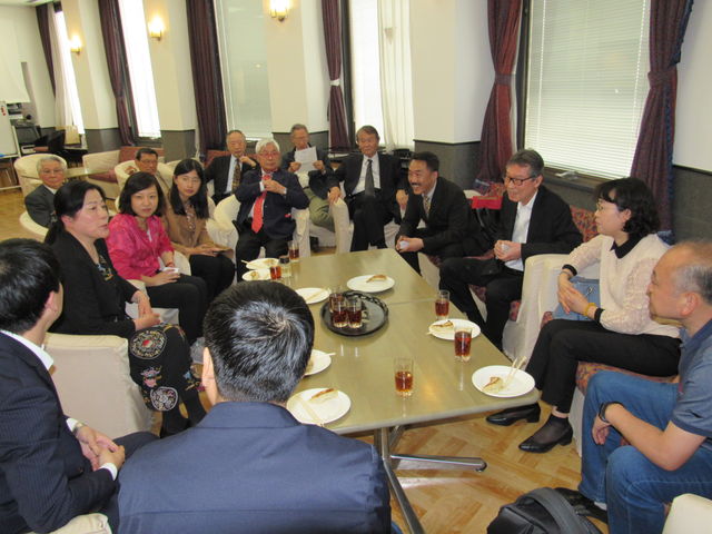 4月16日午前、中国国立華僑大学の張禹東教授(元副校長)と同大華僑華人研究院の錘大榮副教授が東京華僑総会を訪問し、林斯福会長と謝忠勇留日福建同郷会会長並びに江洋龍東華教育文化交流財団理事長と懇談し、交流を深めあった。